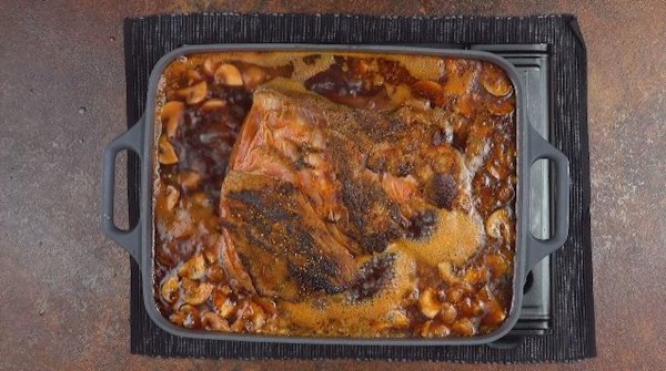 - Remettez maintenant les côtes de bœuf dans la rôtissoire. Déglacez le tout avec du vin rouge et du bouillon de viande, puis enfournez le tout à couvert à 140 °C, à chaleur tournante, pendant environ 5 heures ; mouillez la viande à intervalles réguliers avec un peu de jus de la rôtissoire pour la rendre encore plus tendre.