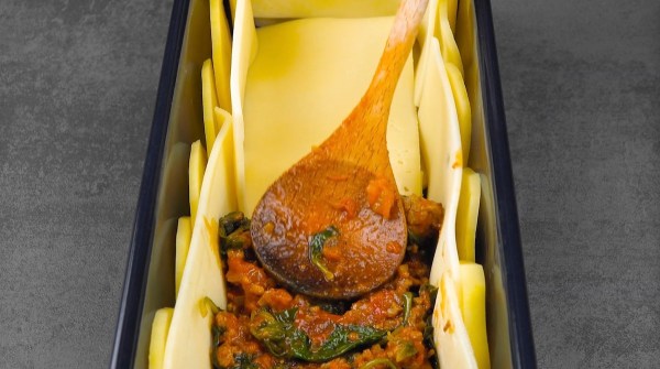 On a décidé de faire, aujourd’hui, un gratin de pommes de terre d’un tout autre genre : un mélange aux épinards, à la viande hachée et à la sauce tomate, le tout dans un moule à cake ! Étrange, vous vous dites, eh bien vous n’êtes pas au bout de vos surprises !
