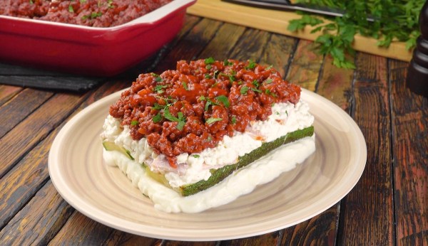 Gratin de courgettes sauce béchamel et son plateau de viande hachée