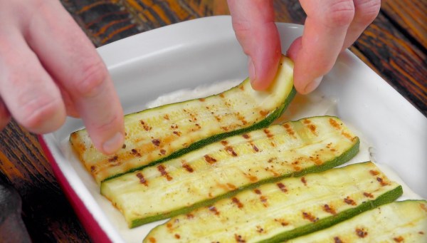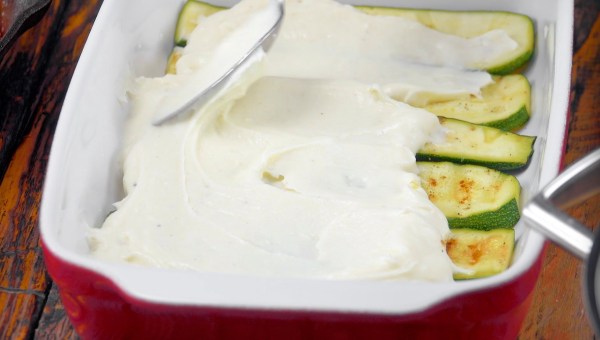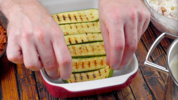 • Déposez une autre couche de courgettes sur la sauce béchamel.