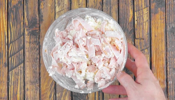 • Coupez le blanc de dinde en longues lanières que vous mélangez avec le cottage cheese.