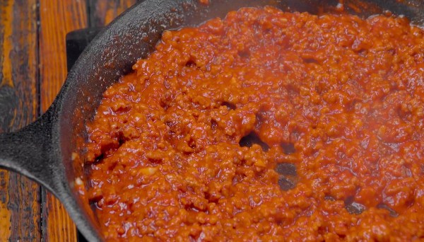 • Faites revenir la viande hachée avec les gousses d'ail émincées dans l'huile et assaisonnez avec du sel et du poivre. Ajoutez ensuite le concentré de tomate et la sauce tomate et portez le tout à ébullition dans une poêle.