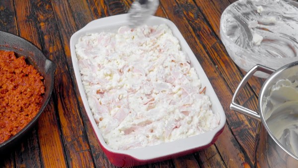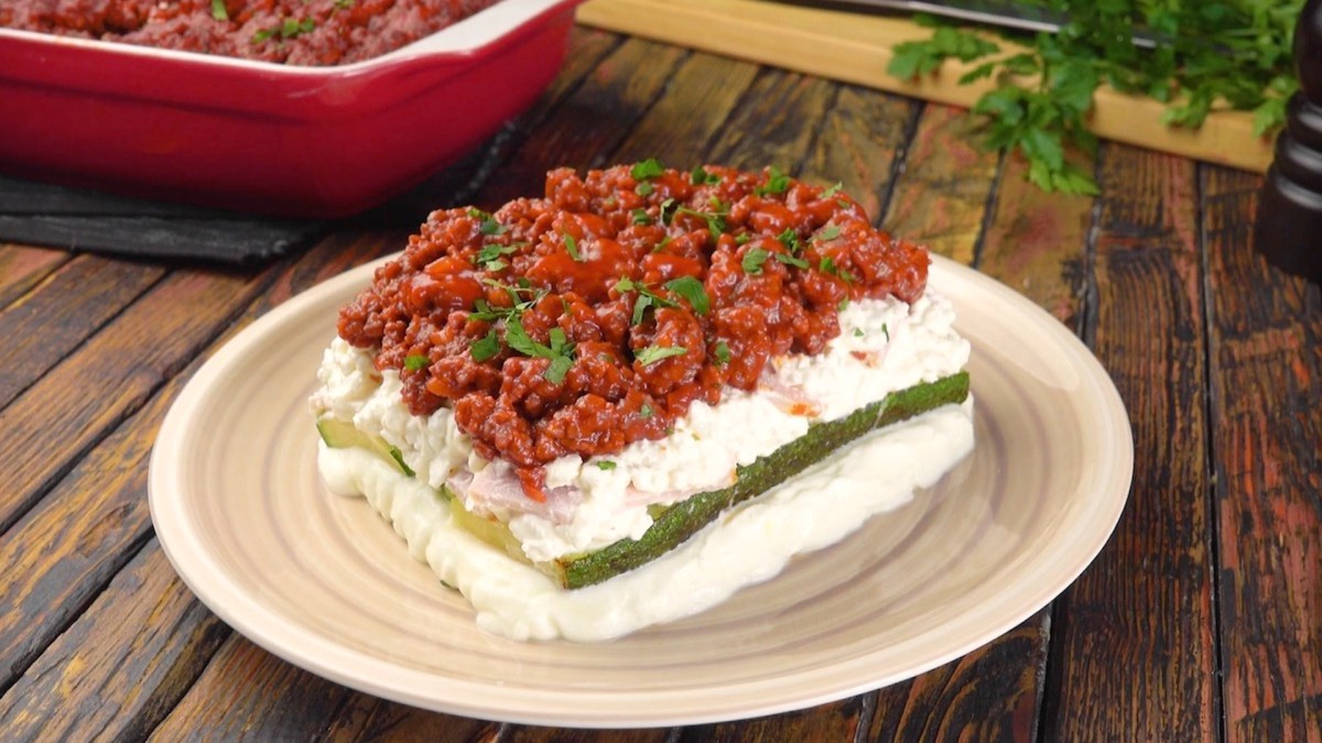 • Couvrez maintenant les courgettes avec le mélange de blanc de dinde et de cottage cheese.