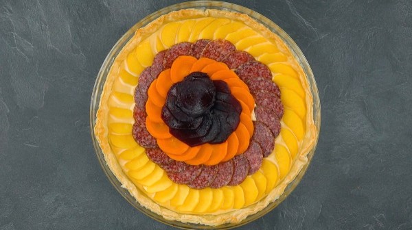 Un gratin est généralement recouvert d’une couche de fromage qui ne laisse pas deviner ce qui se cache en dessous. Avec cette recette, nous avons tout inversé : une couche de mozzarella épicée et onctueuse sur une pâte feuilletée et recouverte de pommes de terre, de salami, de carottes et de betteraves. Voilà de quoi réussir le plus beau gratin de tous les temps ! Voyez par vous-même :