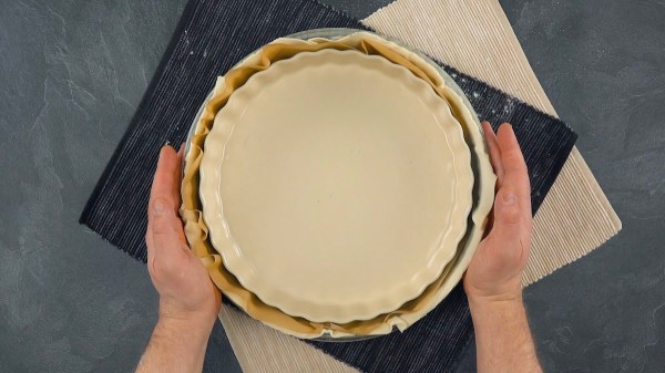 • Graissez un plat à tarte avec du beurre et saupoudrez les surfaces de farine. Placez la pâte feuilletée dans le moule et coupez-la de manière à ce qu'elle ne dépasse pas sur les bords. Ensuite, recouvrez la pâte feuilletée de papier sulfurisé et alourdissez la pâte en posant un autre moule sur le papier sulfurisé. Enfournez la pâte feuilletée pendant 25 minutes à 175 °C.