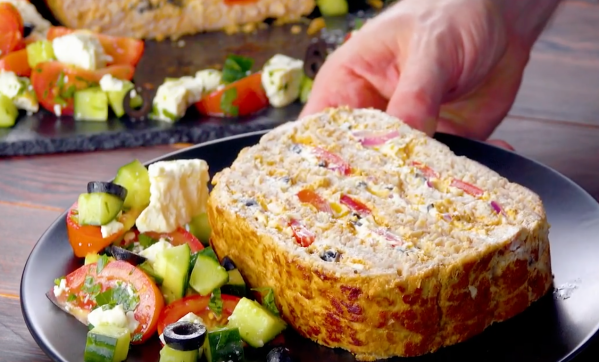 - Avant de servir, garnissez votre rôti avec de la feta, des tranches d'olives, des tomates et du concombre.
