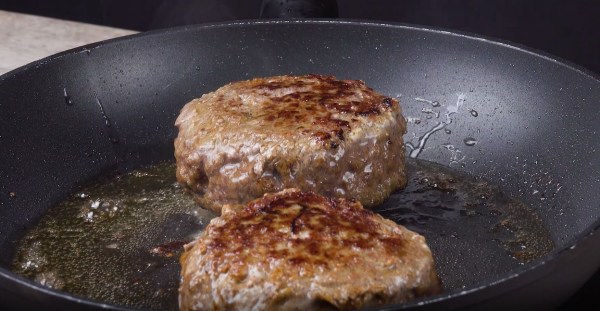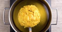 • Prenez environ un quart du mélange fromage-frites et pressez-le dans une assiette avec vos mains. Déposez le mélange sur l'un des burgers. Faites de même pour le deuxième burger. Retournez les deux burgers et ajoutez le reste du mélange de frites pour former deux sphères. Scellez les bords et façonnez-les de nouveau avec vos mains pour former deux boules uniformes et légèrement aplaties. Enfin, chaque burger est cuit dans de l'huile chaude à 170 °C pendant 3 minutes.