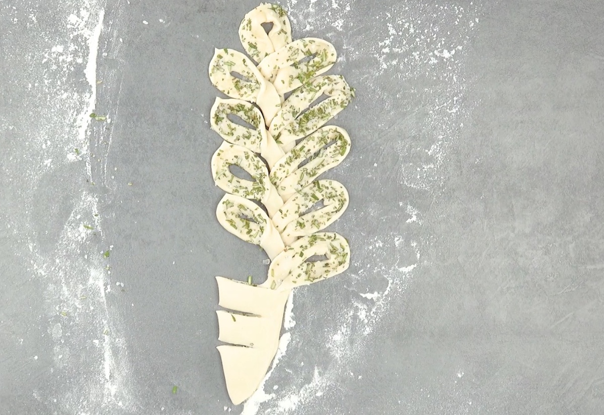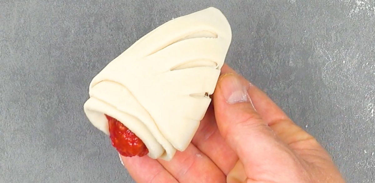 5.2 Repliez la pâte à brioche le long des incisions et placez-la sur le dessus.
