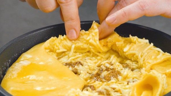 - Faites chauffer de l'huile dans une poêle et faites revenir la viande hachée jusqu'à ce qu'elle soit cuite, puis ajoutez les oignons et les épices. Répartissez ensuite la viande hachée sur le mélange de mozzarella et d'œufs.