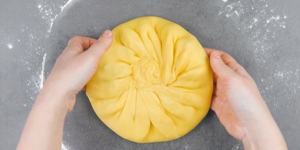 - Repliez les bords de la pâte vers le milieu et tournez le tout ensemble. Pressez un peu la pâte pour qu'elle ne monte pas.