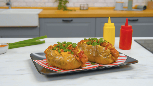 La pomme de terre est un élément incontournable de nos recettes. Que ce soit sous forme de rösti, de gratin ou de snack, notre cœur fond pour les pommes de terre. Aujourd’hui, nous allons vous montrer comment préparer facilement un kumpir. Cette pomme de terre au four fourrée de toutes sortes de friandises originaire de Turquie fait désormais partie intégrante de la cuisine turque de fast-food. Nos pommes de terre sont garnies de chili épicé, de cheddar et de saucisses frites. Un déjeuner sans trop d’efforts. À essayer absolument !