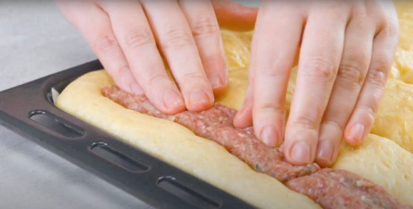 Saucisses de bœuf haché dans un labyrinthe de pâte
