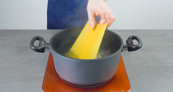 - Faites cuire les feuilles de lasagnes dans de l'eau salée jusqu'à ce qu'elles soient fermes. Protégez-les ensuite du dessèchement en les recouvrant d'une feuille d'aluminium.