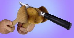 - Faites des entailles dans les pommes de terre à 5 mm d'intervalle. Utilisez deux cuillères en bois pour vous faciliter la tâche.