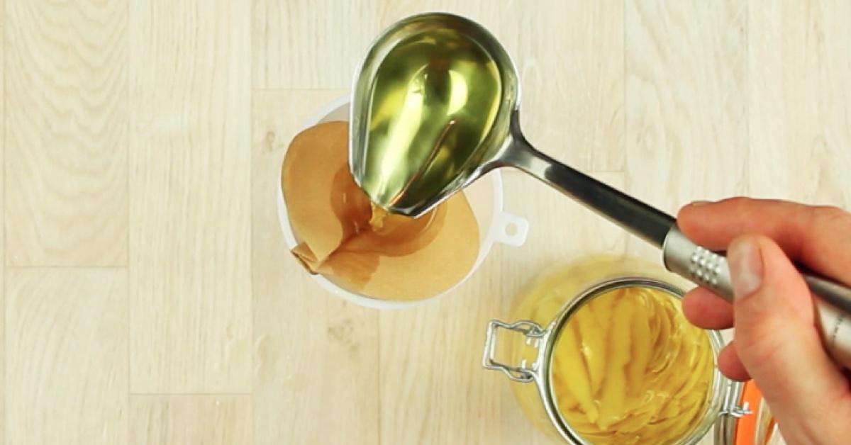 - Retirez les citrons de l'alcool à 90° à l’aide d’un entonnoir et d’un filtre pour éviter les dépôts. Mélangez ensuite le liquide citronné avec la préparation d’eau sucrée.
