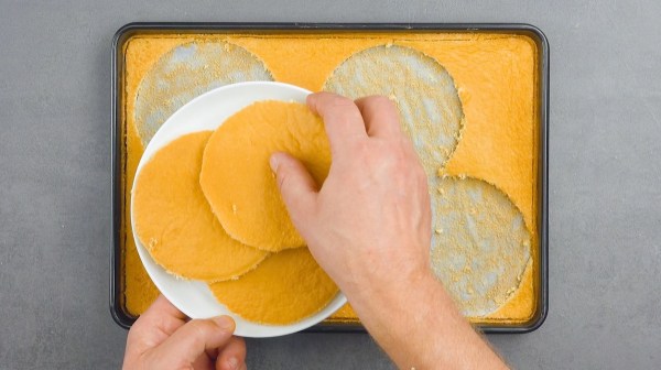 - Battez les œufs et le sucre jusqu'à ce qu'ils soient mousseux. Ajoutez ensuite la farine, la Maïzena et la levure chimique et mélangez le tout pour obtenir une pâte crémeuse. Étalez la pâte de façon homogène sur une plaque à pâtisserie recouverte de papier sulfurisé et enfournez la génoise pendant 10 minutes à 180 °C en mode convection ; laissez ensuite refroidir. Ensuite, coupez le biscuit en cercles à l'aide d'un bol ; les cercles coupés doivent pouvoir s'insérer dans le melon plus tard.