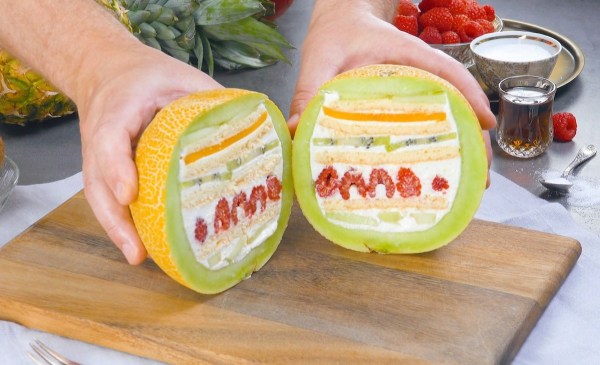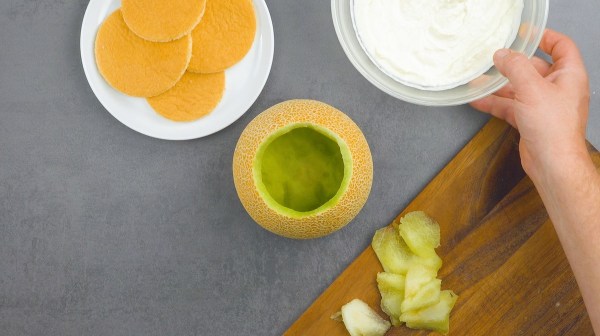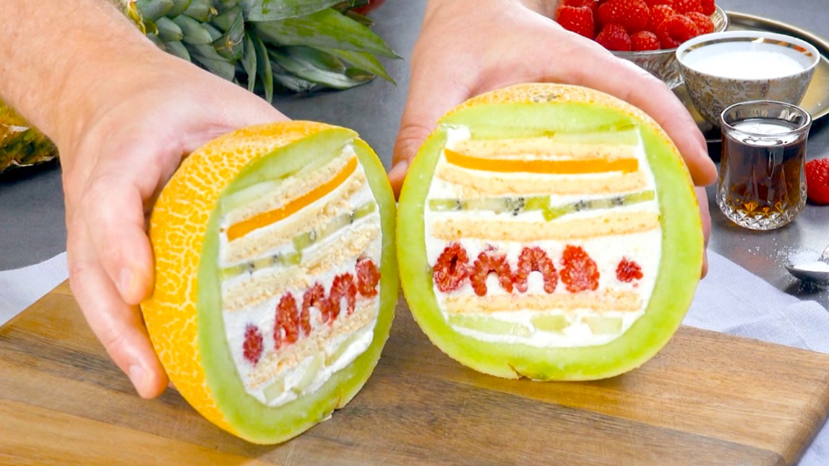 Ce melon farci apporte un rafraîchissement fruité et le plaisir d’un gâteau tout en douceur dans l’assiette. En plus d’être fruité et crémeux, il est tout aussi délicieux !