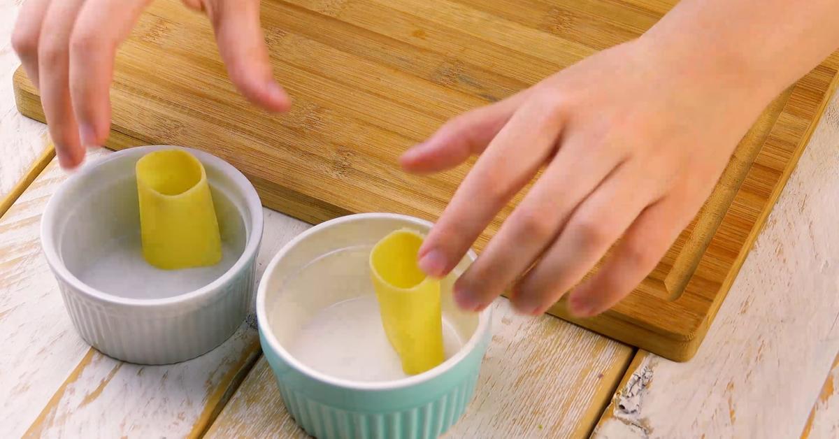 - Faites cuire les cannelloni dans de l’eau bouillante et salée pendant trois minutes. Laissez ensuite refroidir et coupez-les en deux.