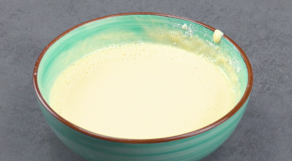 - Mettez la farine, les œufs, le sel et le lait dans un saladier et mélangez jusqu'à obtenir une mixture homogène.