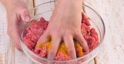 - Mettez la viande hachée dans un saladier et ajoutez l'ensemble des ingrédients secs du pain de viande et malaxez bien le tout. Ensuite, faites-en des rouleaux (avec vos mains) que vous enroulez chacun dans deux tranches de bacon. Placez-les dans un plat allant au four.