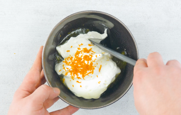 - Fouettez la crème avec un batteur électrique jusqu'à ce qu'elle devienne mousseuse. Mélangez délicatement la crème avec le zeste d'orange et le jus d'orange refroidi.