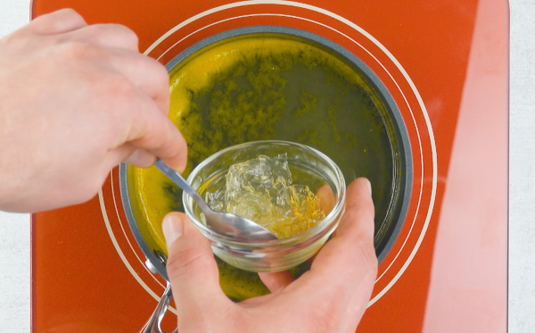 - Râpez le zeste d'une orange et réservez-le. Épluchez une autre orange avec un économe et mettez la peau de côté. Ensuite, pressez les deux oranges. Mettez le jus d'orange pressé avec le sucre et la gélatine trempée dans une casserole et faites bouillir le tout. Ensuite, retirez la casserole du feu et laissez refroidir à température ambiante.