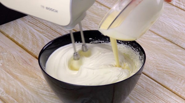 - Pour la mousse, mélangez la crème fouettée liquide chaude avec la gélatine à l'aide d'un batteur électrique et laissez le tout refroidir. Dans un autre saladier, mélangez le yaourt, la crème fouettée, le sucre et l'arôme vanille puis ajoutez la mixture précédemment préparée.