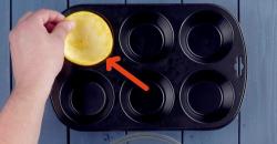- Coupez trois oranges en deux et grattez la chair avec une cuillère. Déposez les moitiés d'oranges dans un moule à muffins.
