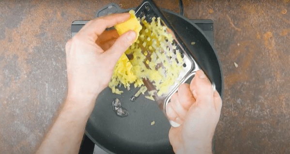 - 2.1 Préchauffez légèrement la poêle. Râpez la pomme de terre dans la partie supérieure de la poêle, assaisonnez avec du sel, du poivre et de la noix de muscade et répartissez le mélange de façon à ce qu'il ne soit pas trop épais.2.2 Placez la tranche de fromage sur le dessus, puis placez la brochette en bois sur le fromage et placez les jaunes d'œufs sur la brochette en bois. Laissez frire la brochette de pommes de terre et de fromage à feu doux.2.3 Ensuite, repliez soigneusement les côtés vers le centre, retournez le tout et faites frire la brochette de l'autre côté.