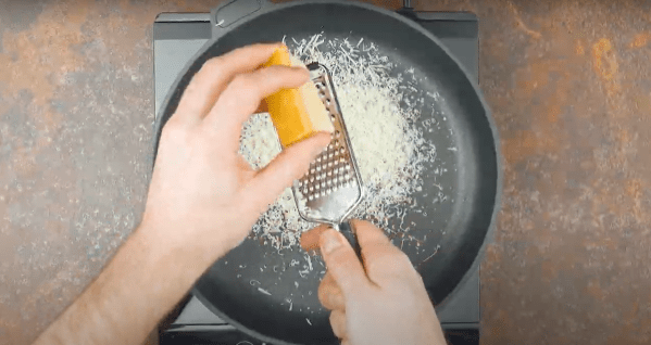 - 3.1 Préchauffez légèrement la poêle. Râpez le parmesan sur la moitié supérieure de la poêle et laissez-le fondre.3.2 Placez une tranche de jambon cuit sur le parmesan fondu, placez une brochette en bois sur le jambon cuit, puis ajoutez délicatement les 2 jaunes d'œufs sur la brochette en bois.3.3 Laissez le tout frire à feu doux et poivrez la brochette jambon-parmesan. Ensuite, incorporez soigneusement le parmesan qui dépasse vers le milieu et tournez la brochette pour que tous les côtés soient bien dorés.