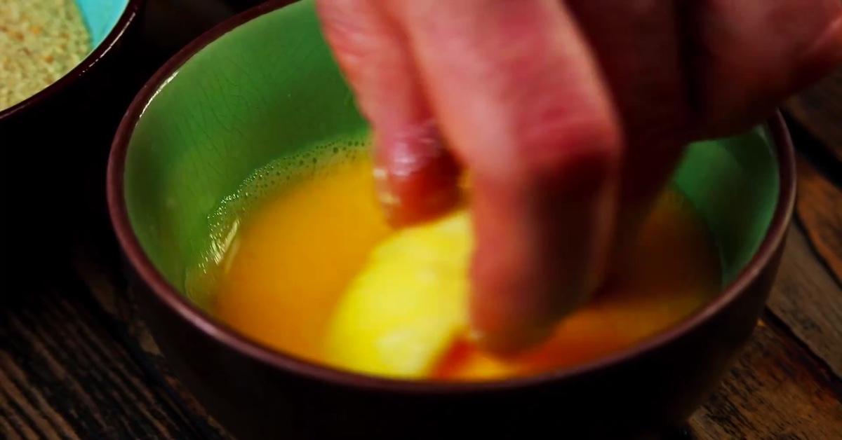 - Préparez vos blancs d’oeufs à passer à la friture : trempez chacune de vos moitiés respectivement dans un bol de farine, un d’oeuf battu et pour finir dans un de chapelure. Déposez ensuite dans une poêle avec de l’huile bien chaude et faites frire jusqu’à obtenir une enveloppe dorée.