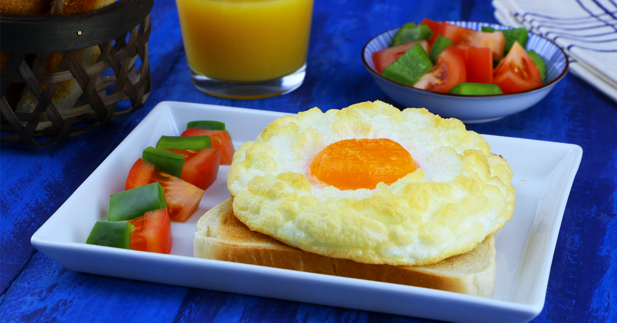 - Déposez un lit de votre nuage sur une plaque ou un plat allant au four et faites cuire pendant 3 minutes. Déposez ensuite délicatement votre jaune d’oeuf sur son nuage et remettez au four pendant 2 minutes à la même température.