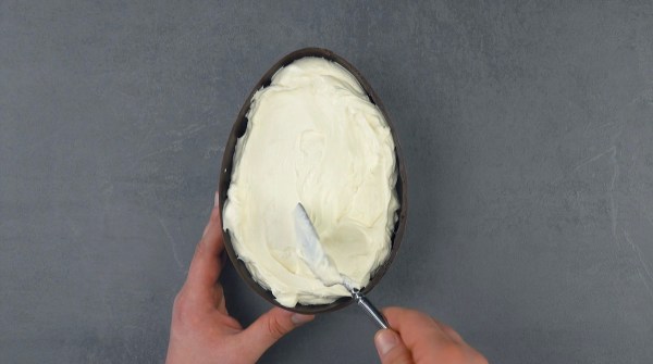 • Mélangez tous les ingrédients pour la crème dans un bol. Remplissez les deux moitiés d'œuf de crème. Conseil : avec de la gélatine, vous donnez à la crème plus de fermeté.