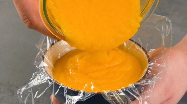 • Épluchez et coupez les mangues en morceaux, ajoutez le jus de citron et réduisez le tout en purée fine. Recouvrez deux bols de même taille de film alimentaire et répartissez la purée de fruits dans les deux bols. Ensuite, congelez les purées de mangue pendant une heure.