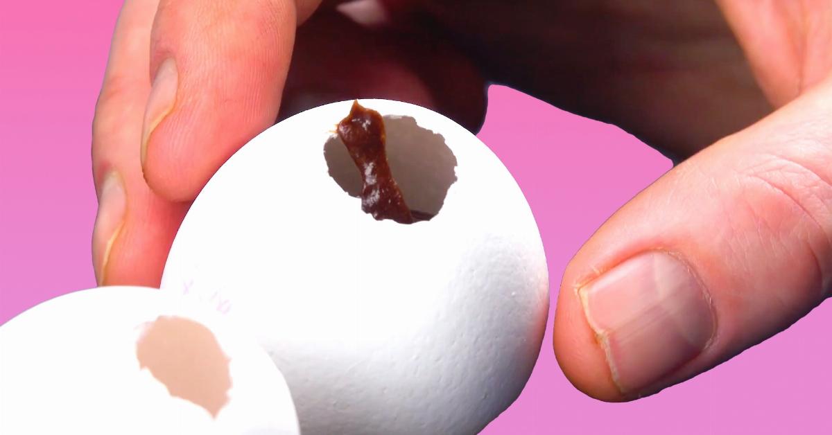 - Plantez et tournez un pic à brochette dans chaque œuf pour créer de l'espace et pouvoir ajoutez le Nutella à l'aide d'une poche à douille.