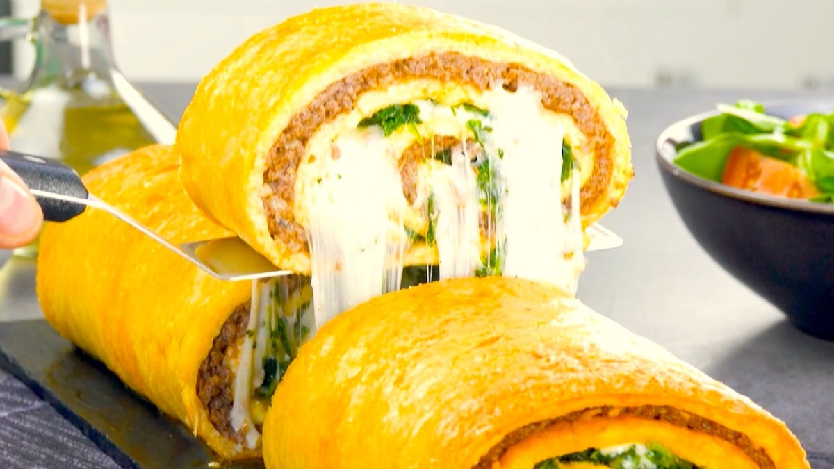 Pour un petit-déjeuner consistant, un brunch copieux, un déjeuner extraordinaire ou un repas du soir décontracté, cette omelette roulée au fromage, à la viande hachée et aux épinards est délicieuse à tout moment de la journée. Bon Ap’ !