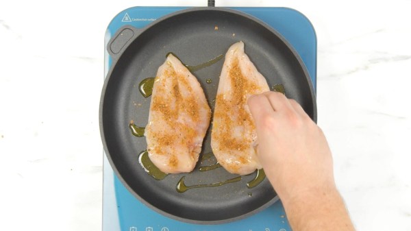 - Faites des incisions pas trop profondes dans le blanc de poulet. Mélangez les épices et assaisonnez le poulet des deux côtés. Ensuite, faites-le frire dans une poêle avec un peu d'huile.