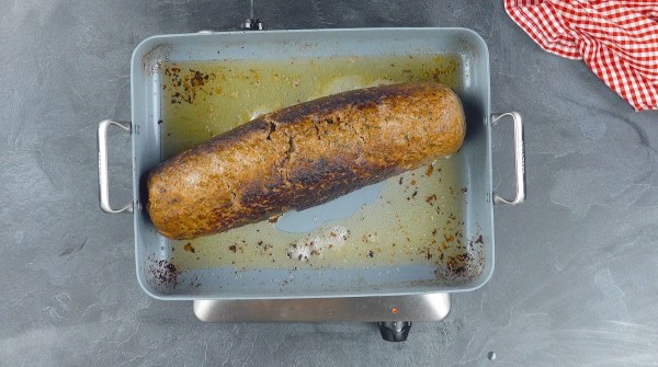Servi en un seul morceau, ce pain de viande ressemble à tous les autres. C’est lorsqu’il est coupé et qu’on aperçoit l’œuf en forme de bâtonnet, le fromage fondu et le jambon cuit que le charme opère. Qu’est-ce que c’est bon. Vous allez faire le plein de protéines pour affronter le grand froid. Bon Ap’ !
