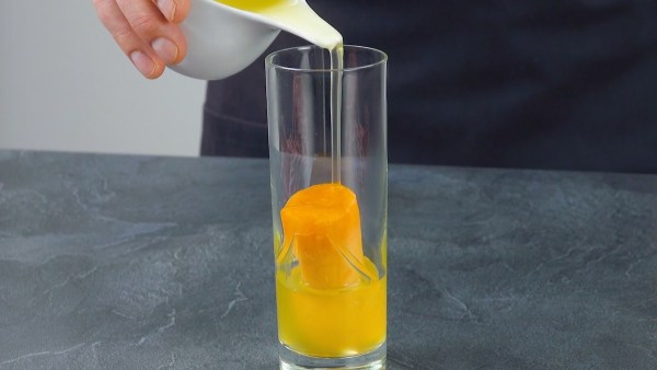 - Retirez les jaunes d'œufs des verres et placez-les dans des verres légèrement plus grands et graissés. Versez le blanc d'œuf dans les verres contenant les jaunes d'œufs. Faites cuire les verres pendant 60-90 minutes à couvert au bain-marie et laissez-les refroidir un peu.