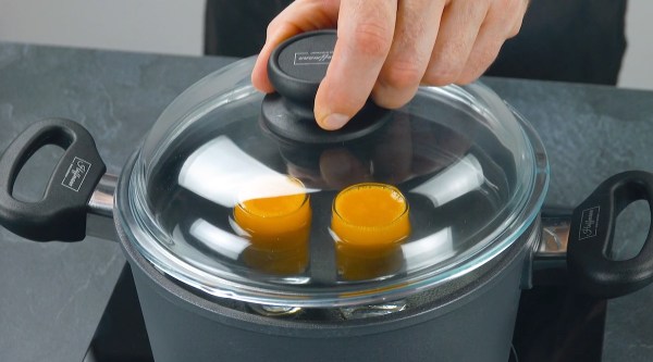 - Séparez les œufs pour l'œuf en bâton. Mélangez les jaunes et versez-les dans de petits pots graissés. Faites cuire le jaune d'œuf à couvert pendant 30-40 minutes au bain-marie jusqu'à ce qu'il durcisse. L'eau ne doit pas bouillir, la température optimale est de 80 °C.