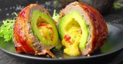 • Enveloppez l'avocat dans du bacon et badigeonnez de sauce BBQ. Enfournez pendant 20 minutes à 160 °C à chaleur tournante.