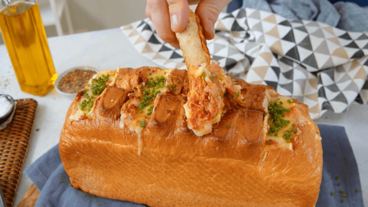 Voici la recette parfaite pour tous ceux qui aiment le pain blanc. On remplit tout un pain blanc de sandwichs de camembert et on l’accompagne de pain perdu croustillant, affiné au cheddar, pour le trempage. Une idée géniale et surtout simple pour un déjeuner ou un dîner hors du commun.