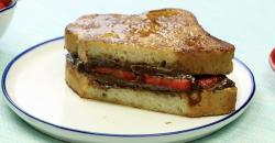 - Mettez la tranche avec le Nutella sur celle avec les fraises de façon à ce que les fruits soient entourés de Nutella.