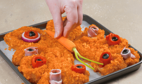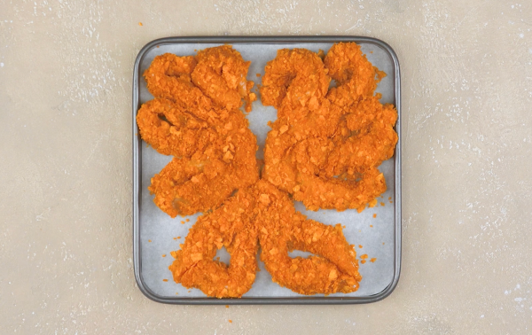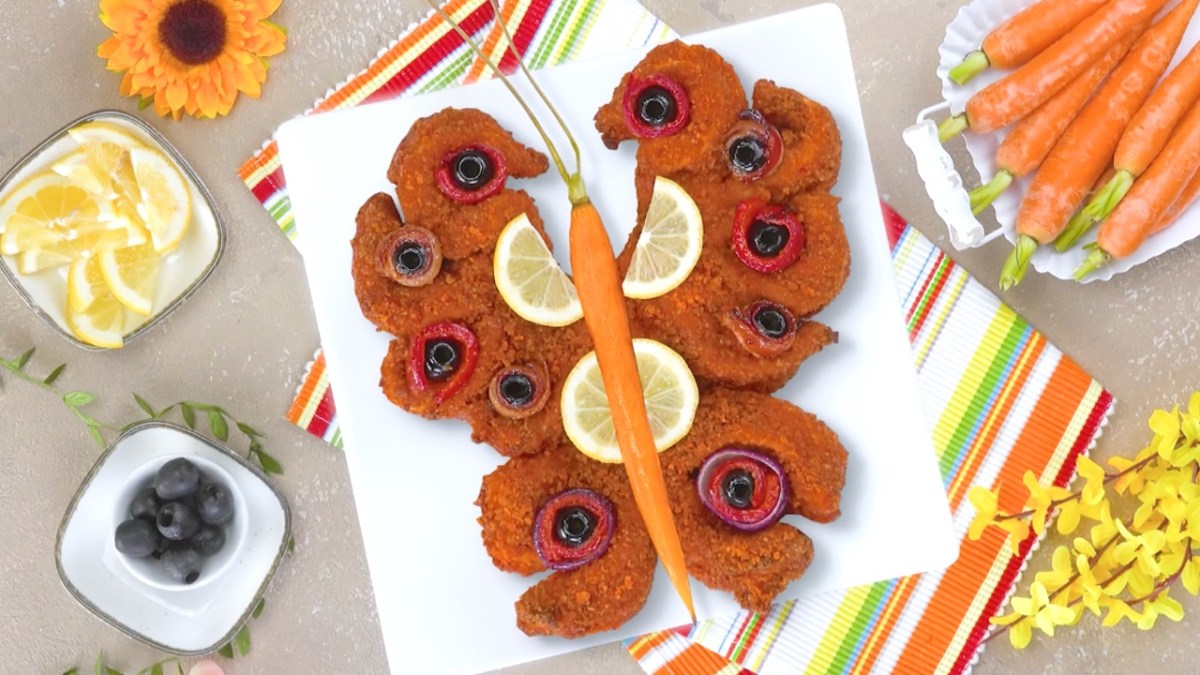 Une tendre viande de poulet avec une panure croustillante de chips, c’est probablement l’une des meilleures combinaisons possibles en cuisine. Et si en plus la viande de poulet se révèle être un papillon, on a tout gagné. Quelle belle idée ! Bon Ap’ !