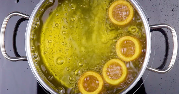 - Faites-les bouillir dans l'eau pendant 4 minutes puis dans l'huile (160 °C) pendant 3-4 minutes.