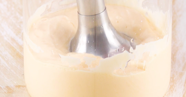 - Pour l’aïoli, mélangez les ingrédients dans un saladier avec un mixeur plongeant.