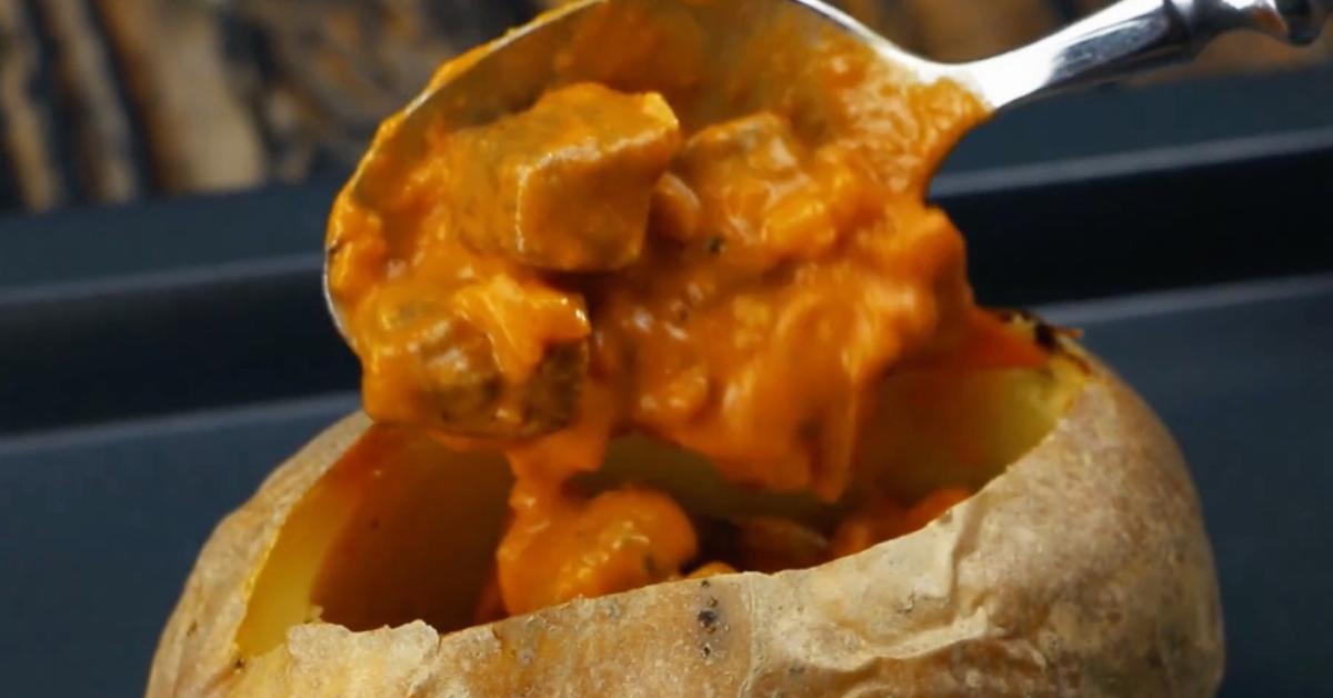 En Russie, le boeuf Stroganoff est un grand favori des déjeuners en famille le dimanche. Ici, les pommes de terre au four remplacent les pâtes, pour un plat réconfortant à souhait :