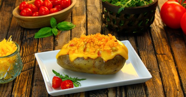 - Rincez les pommes de terre, enveloppez-les dans une feuille d'aluminium et enfournez à 180°C (350°F) pendant 60 minutes.