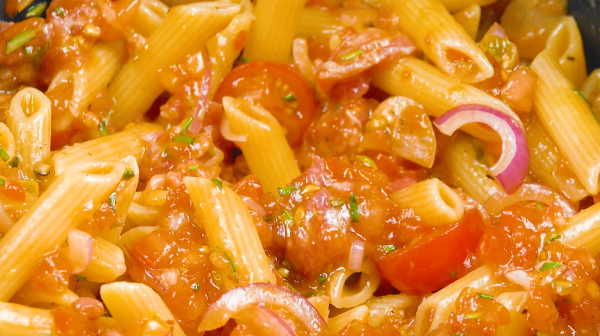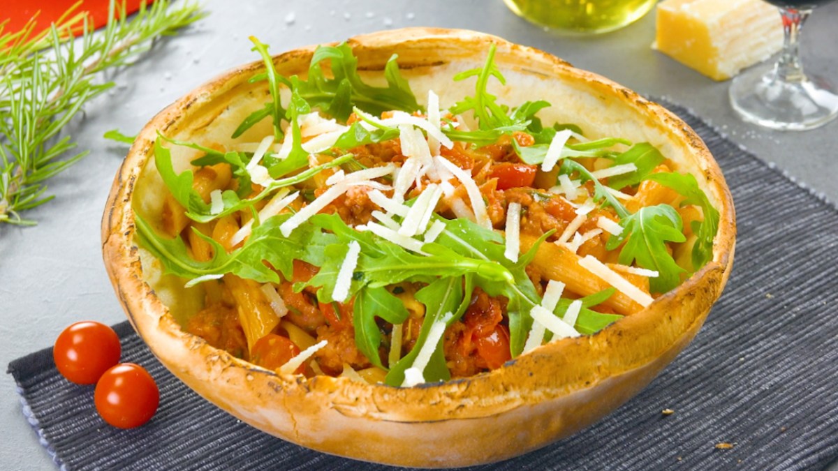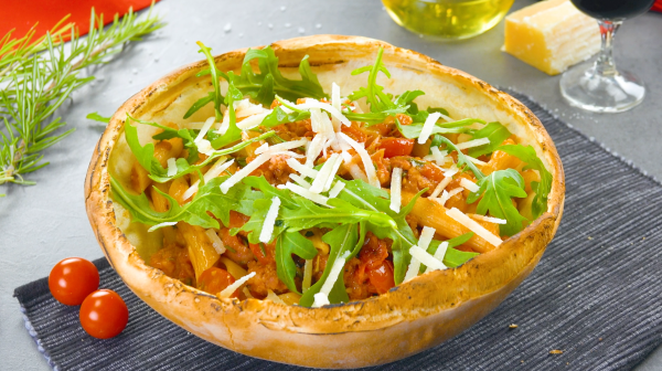 Si vous deviez choisir entre une pizza ou des pâtes, vous choisiriez quoi ? Difficile de trancher, pas vrai ? Grâce à Bon Ap’, ce dilemme est de l’histoire ancienne. Dans la recette suivante, nous combinons pizza et pâtes en servant les pâtes avec une sauce tomate épicée et de délicieuses saucisses italiennes dans un bol en pâte à pizza. Un rêve qui devient réalité !