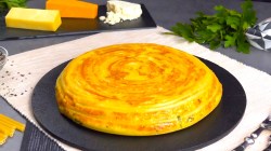 - Couvrez la poêle et faites cuire à feu moyen pendant 15 minutes. Enfin, retournez l'omelette avant de servir.